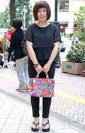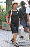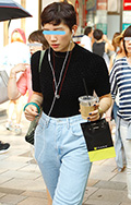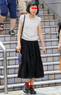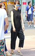 オールブラック・コーディネートもオンザ眉毛のヘアなら涼しげな...