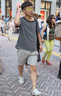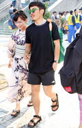男子の双子コーデも増えている。ツーブロックの眉上バンクは一部...