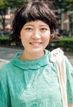 CODE+LIM(コードプラスリム)という原宿の美容院で初めて切ってもらいました。高校からショートヘアでその頃は眉くらいの長さの前髪だったんだけれど、おかっぱ、マッシュを経ていまのパーマヘアになりました。オンザ眉毛にしたのはなつめちゃんの影響が大きいです。眉毛はしっかり描かずふんわりめで、メイクもナチュラルです。はっきりした顔よりもふんわりしたかわいらしい感じが好きなので。
