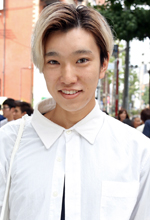 美容院は原宿のALBUM(アルバム)です。FTISLANDとか韓国のアーティストが好きで、ずっとハイトーンヘアです。この髪色には3か月前にしました。ブリーチ3回とムラシャンでキープしていたんですが、髪が伸びてきたのでグラデーションにしました。髪は夏っぽく分けてみました。