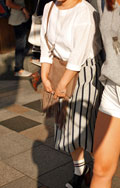 トレンドのボヘミアンファッションを、タイトスカートで大人っぽ...