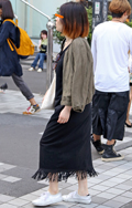 ミリタリーテイストスカートも切りっぱなし加工に。