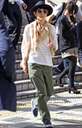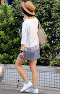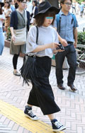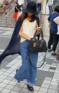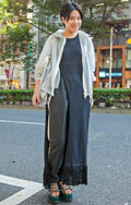 ベーシックな着こなしを、ハットやフリンジショールでボヘミアン...