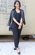 ライダースジャケット+ボヘミアンテイストのワンピースでロック...