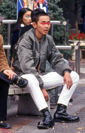 くるぶしより長い丈の編み上げブーツ。ヒールの有無、ソールの厚さなどは問わない。アウトドア系のブーツでも丈が長いものなら可。ただしパンツでブーツ丈のがわからない場合はカウントから除いた。