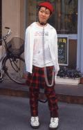 中に着たシャツの裾がアウターの裾から5㎝以上出ているスタイル。