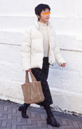 羽毛だけでなく、生地中に綿わたやウレタンなどふかふかしたもの(例えばキルティング)が入っている素材すべてを指す。アイテムは、ジャケット類以外でも、リュックやショルダー、スカート、パンツ、帽子などの小物類も含む。