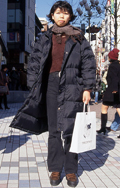 ロングの定義はひざがすっぽりと隠れる丈。色、表面の素材(皮、綿、ナイロン、サテン等々)は問わない。