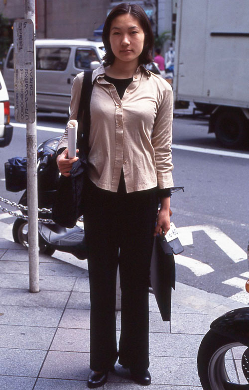 Tシャツではなく、ポロシャツでもない、シャツのスソをボトムスから出して着用したスタイル。シャツの形状であれば、素材は問わない。また、エリの有無も問わない。