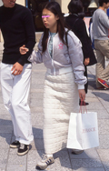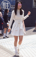 ホワイトの無地のボトムスすべて。パンツもスカートもキュロットも含む。また、白いコートなどでその下のスカートなどが見えない場合も含む。