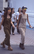 茶系コーディネートの定義は、トップスかボトムスがいわゆる茶系のものを着ている女性。柄ではなく無地のもののみ。バッグや靴、アクセサリー類は除く。色の範囲は、薄いものでもベージュより濃い茶色で、マロン、こげ茶(チョコレート色)まで。