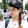 シンプルなひとつ結びをキャップでアレンジ。