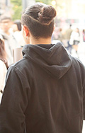 ツーブロックの男性の間では、トップの毛を結んでサイドの刈り上...