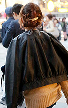 ボリュームのあるシルエットの人気に伴い、髪をすっきりとまとめ...