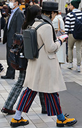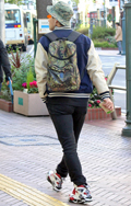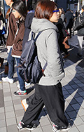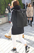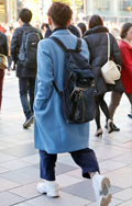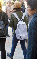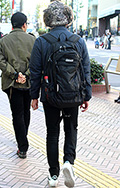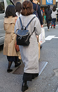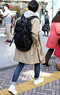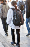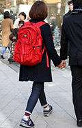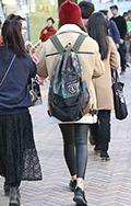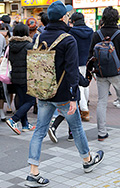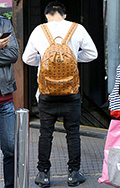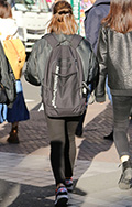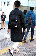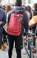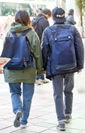 背中に背負う荷物を入れる袋状のものを持つ男女すべて。サイズやデザイン、素材は問わない。また、トートバッグなどのストラップを広げて背負っている場合も含む。