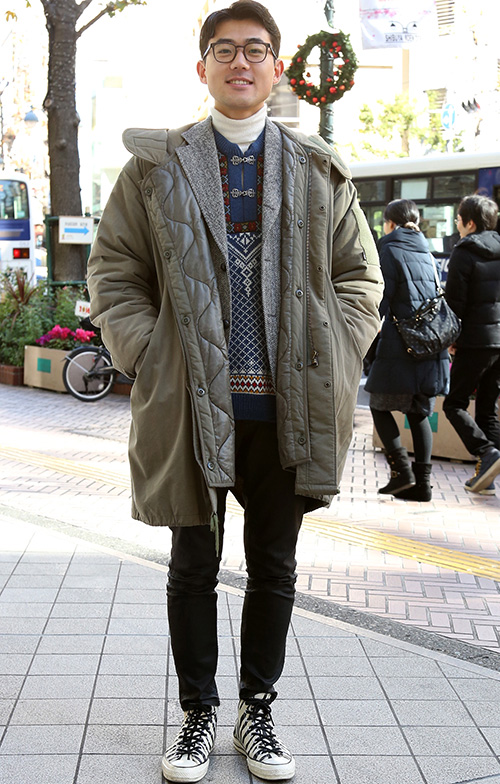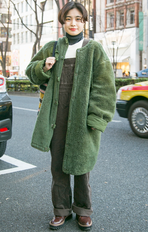 いちばん上に着用したものが、ベージュ〜モスグリーン、カーキ色がベースとなっているアイテムを着用する女性すべて。素材やデザインは問わない。