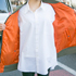 ビッグシルエットのMA-1が欲しいと思っていて、父にねだってお古をもらいました。リバーシブルだけれど、カーキの方だけ使っています。もう1つカーキのMA-1を持っているけれど、レディースのものでショート丈で細身なので今季はあまり着ないです。ワンピースを合わせるときには着ます。