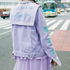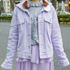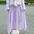 パステルカラーを着るようになったのは、高校3年生くらいから。もともと、姉がすごくおしゃれでパステル系のファッションをよく着ていて、ショップを教えてもらったりしているうちに、影響されて自分も好きになりました。今日は「Blanc Rose」のユニフォームのグレーのTシャツをメインに考えて、全身パープルなのがかわいいと思ってこのコーディネートになりました。普段はピンクと白を合わせたり、グレーとピンクを合わせたりしています。