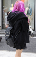 カツラ?のようなショッキングピンクのヘアカラー。黒にピンクを...