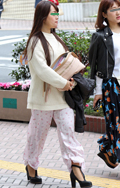 白×ピンクでコーディネートを統一していた3人組。原宿地点では...