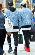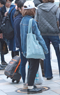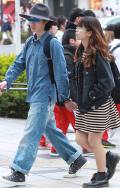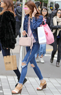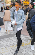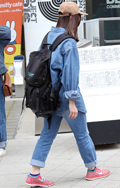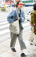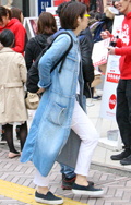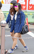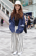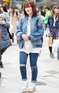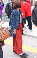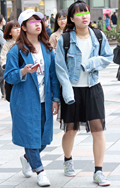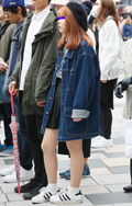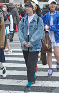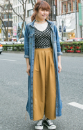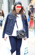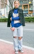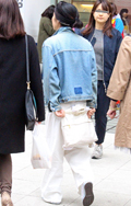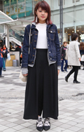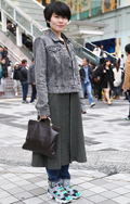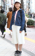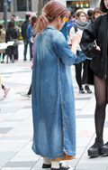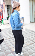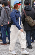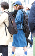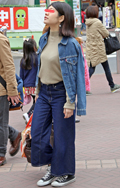 いちばん上に着ているアイテムが、デニムの女性すべて。リジット、色落ちなど色、柄は問わない。