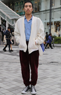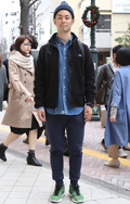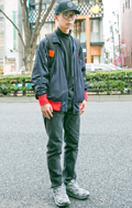 こちらはスタジャンとジャージパンツの組み合わせ。男性にはスポ...