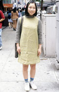 トップスからボトムスまでが繋がっているスカートすべて。ジャンパースカートやAラインロングトップスなども含む。その上や下に何を着用していても構わない。素材、色、柄も問わない。