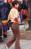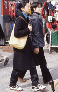 いわゆるスニーカー(ゴム底のシューズ)を履いている女性すべて。表面の素材は問わない。