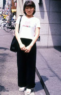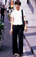 女性黒パンツ うち、白ピタTシャツ