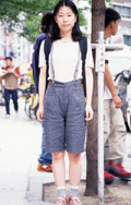 丈が足首とヒザの中間(すね)丈か、それ以上短いパンツすべて。シルエットは太くても細くても構わない。もちろん、素材や色も問わない。また、パンツの上にスカート類を重ねているケースも含む(但し、スカートよりもパンツが長い状態に限る)。