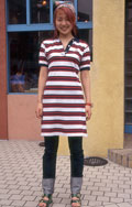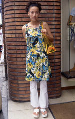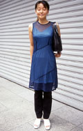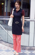 その下にパンツを重ねて着用しているスタイル。パンツのデザインや素材は問わない。