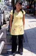 その下にパンツを重ねて着用しているスタイル。パンツのデザインや素材は問わない。