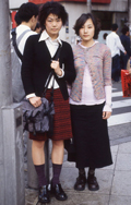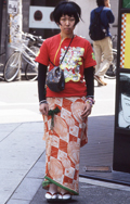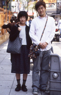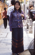 トップスかボトムスのいずれかがデニム素材のアイテムを着用している人。色は問わない。バッグや靴などの小物類は除く。