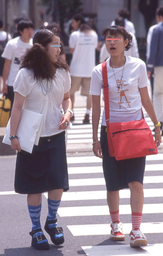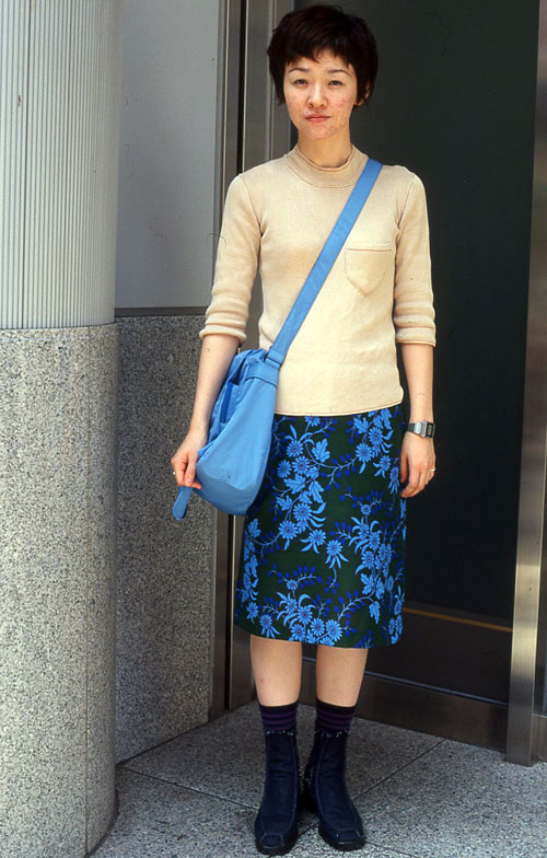 スカートの丈がヒザより5〜6センチほど上、または下のもの。素材や色は問わない。