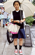 トップス、ボトムスのいずれかが黒いもの。地模様が入っているものも含むが、チェックなど他の色が大きく混ざっているものは除く。