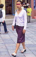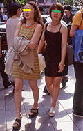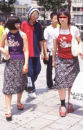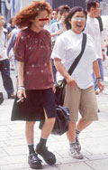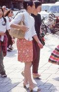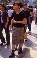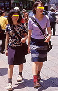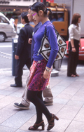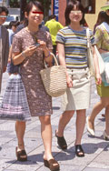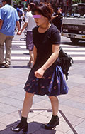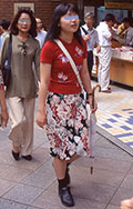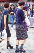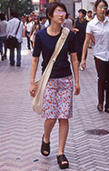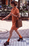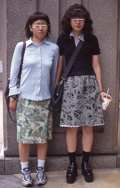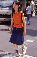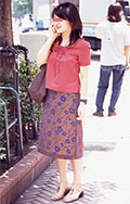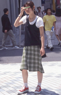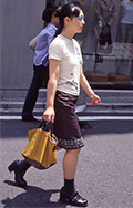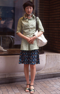 スカートの丈がヒザより5〜6センチほど上、または下のもの。素材や色は問わない。