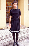 トップスもボトムスもともに黒いもの。ワンピースも含む。丈やデザイン、素材は問わない。