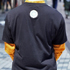 この半袖Tシャツは、レコード付きで限定500着しか生産されなかった超稀少アイテムです。メンノンを見て知って、お店の人にとっておいてもらいました。並んだくらいでは手に入らないし、各地でも10分で完売したと聞きました。今日はパンツの色と合わせて着ています。こういう感じで着るといいよ、と店員さんにすすめられました。パンツはすそがシースルーになっていて、靴下がちょっと見えるところが気に入っています。