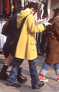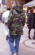 フードの付いたトップスすべて。下に着たトップスのフードだけを出している場合も含む。丈や素材、色などは問わない。