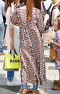 柄もので人気だったのがロングガウン。風にひらりとなびく薄くて...