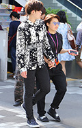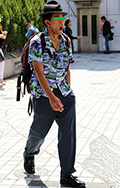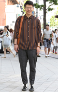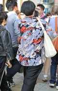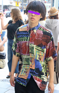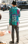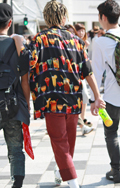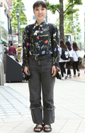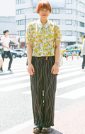 サイケデリックな柄が目を引いたシャツルック。この日は日差しが...