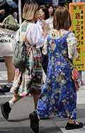 花柄のガウンを羽織った2人組。白トップス+デニムという、昨年...