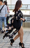 シャツ以外では柄のワンピースも増えていた。フリンジ付きのレザ...