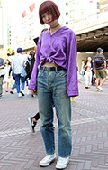 ちょっと懐かしい印象の「ギャル」系女子にも柄シャツが人気。こ...