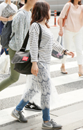 ボーダートップス+デニム+スニーカー+カジュアルバッグの定番...