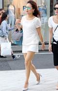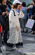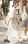 シースルーアイテムの中でも新宿地点で多かったのがレースのロン...