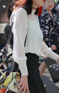 袖だけ透け感のあるシャツブラウスも多い。+スキニーデニムや厚...