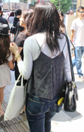 キャミソールとバッグを同系色でまとめ、小物に統一感を持たせた...