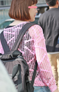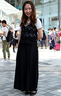 胸元がレース編みになったトップスも大人気。色が黒じゃなかった...