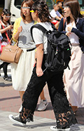 原宿地点の「すけすけアイテム」の大半はレースやシフォン素材。...